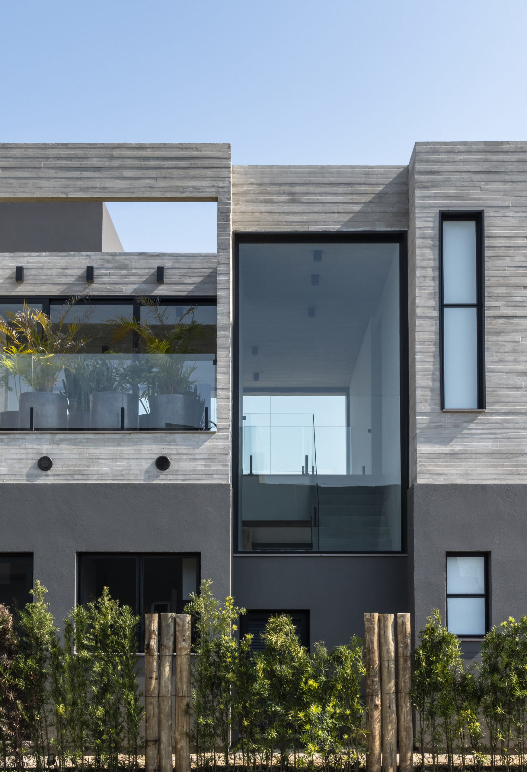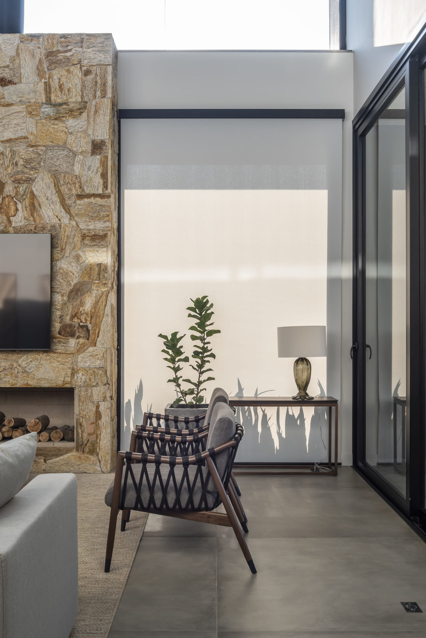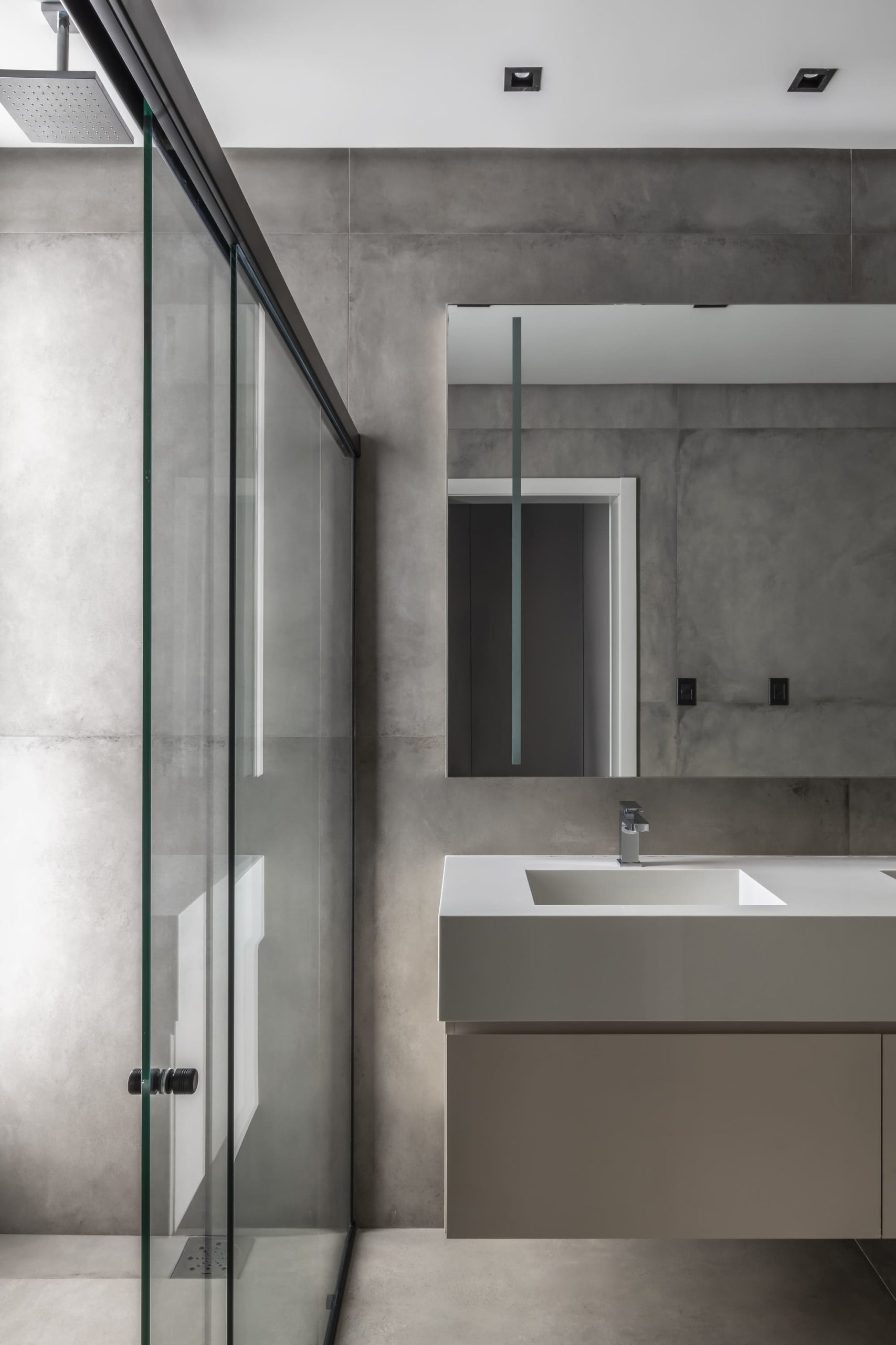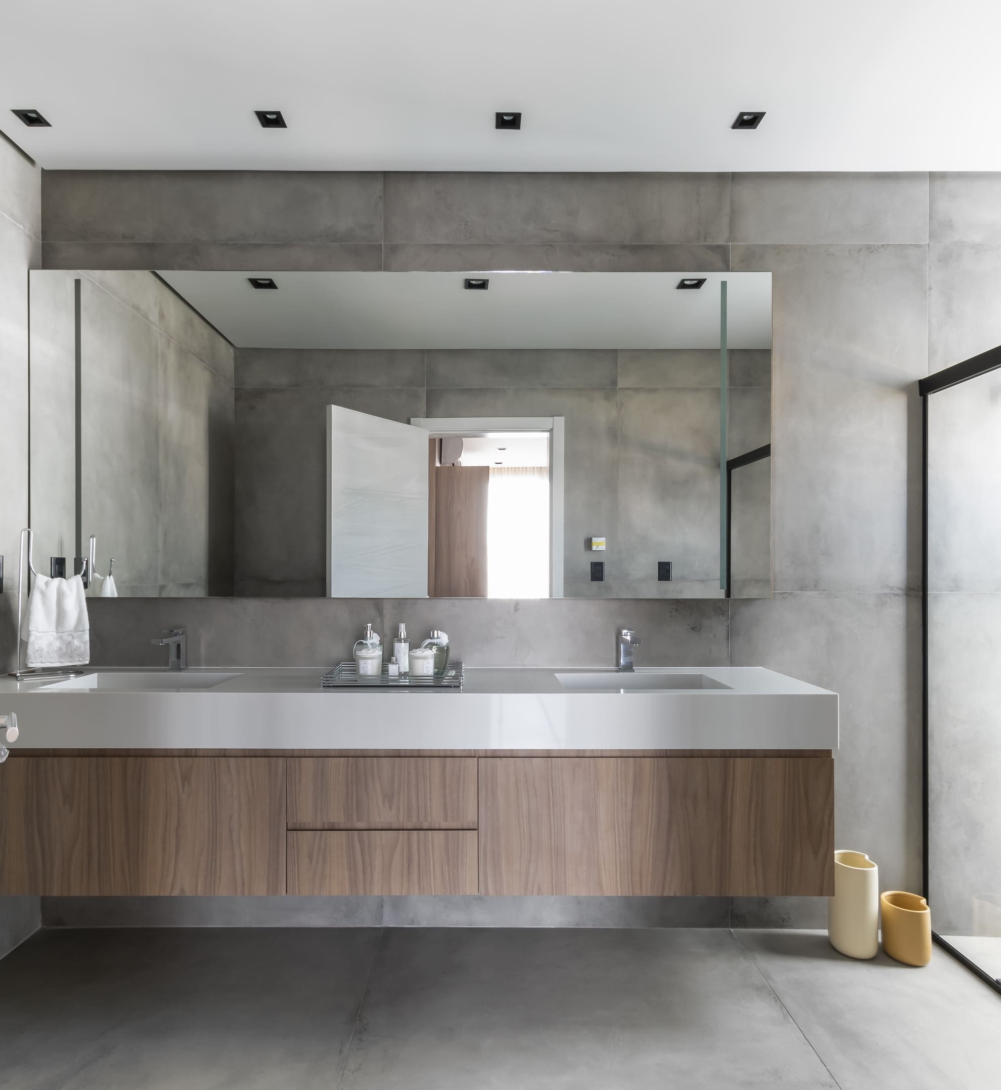 A composição de concreto, pedra e madeira em equilíbrio com a forma pura, tornam-se a sintetizam o projeto: beleza + contemporaneidade + funcionalidade.